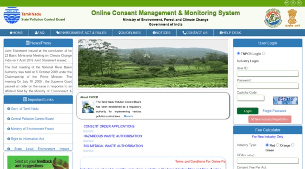 tnocmms.nic.in Online Consent Management System : Tamil Nadu Pollution Control Board
