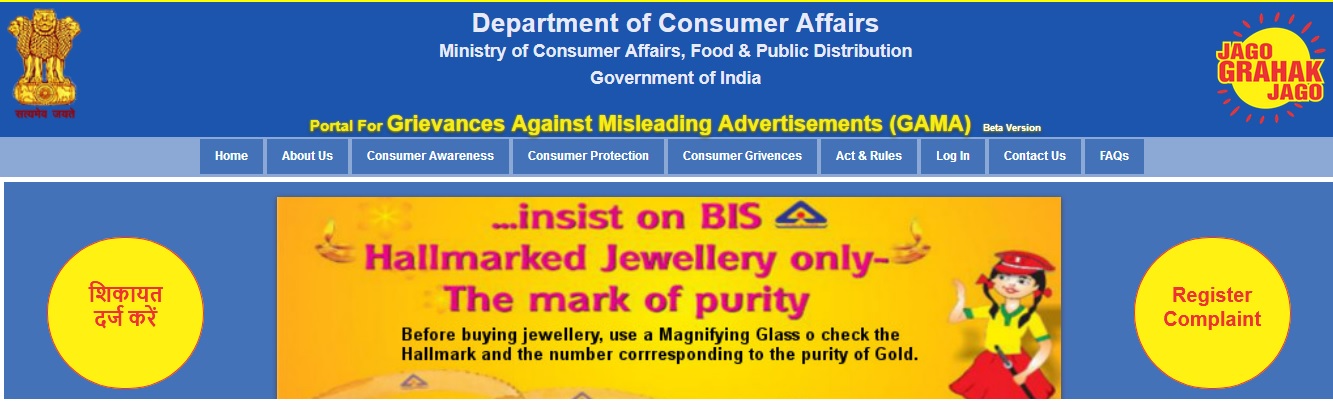 gama.gov.in Grievances Against Misleading Advertisements : Department of Consumer Affairs