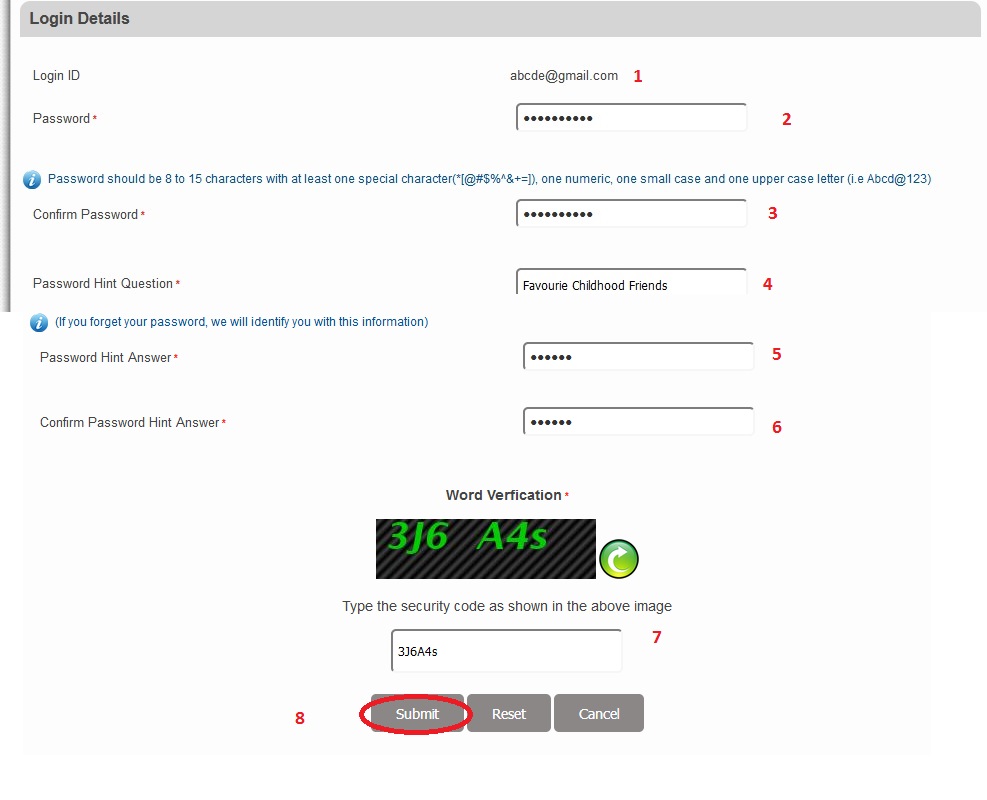 Step 6 : Re enter your Confirm Password Hint Answer*