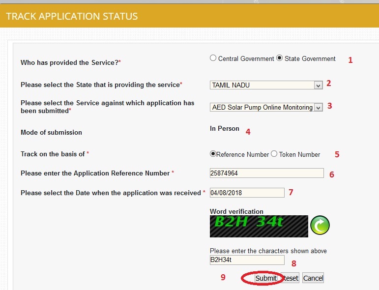 2. Track Application Status form is displayed on the screen. You will notice that there are certain fields marked with * sign, which means that they are mandatory for you and required to be filled in.