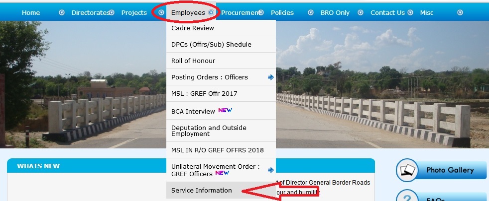 Go to the official website,click on the Employee tab in menu,then select the service information option drop down list.