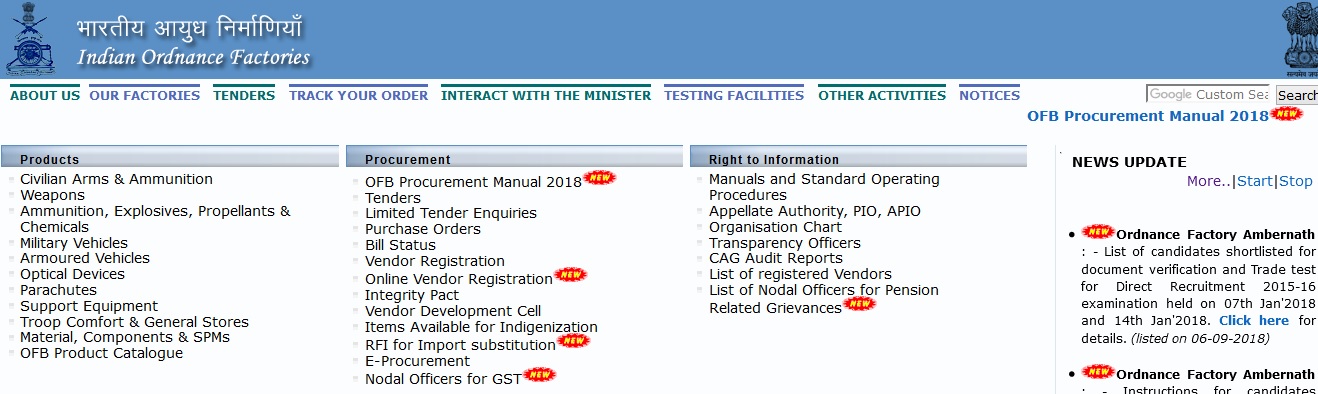 OFB India Track Your Order / Bill Status : Ordnance Factory Board