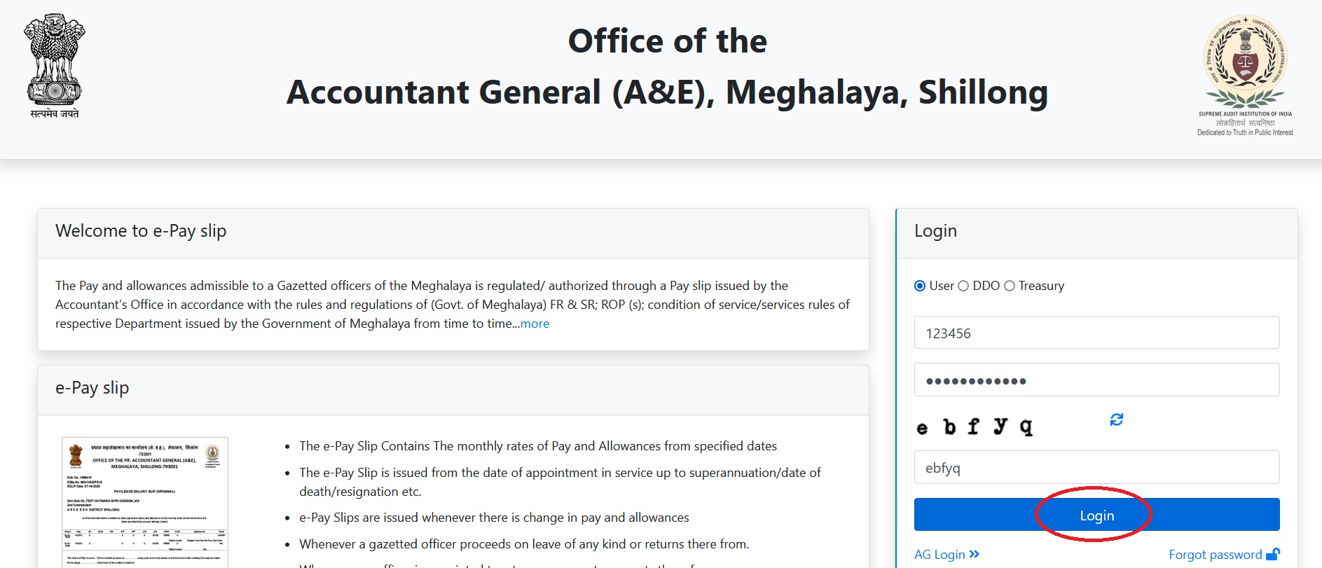 The Accountant General (A&E), Meghalaya, regulate/authrorize the Pay and allowances admissible to a Gazetted officers of the Government of Meghalaya through a Pay slip in accordance with the rules and regulations such as FR & SR, ROP (s), condition of service/services rules of respective Department issued by the Government of Meghalaya from time to time.