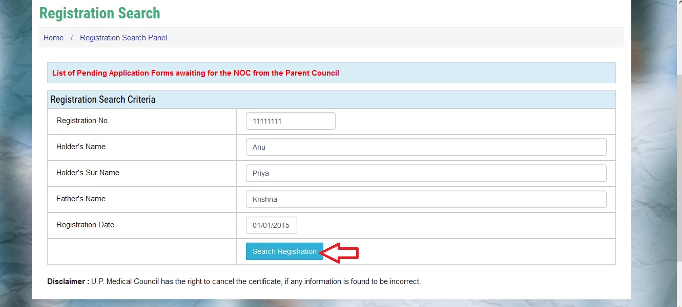 Search Registration Here : https://www.upmedicalcouncil.org/