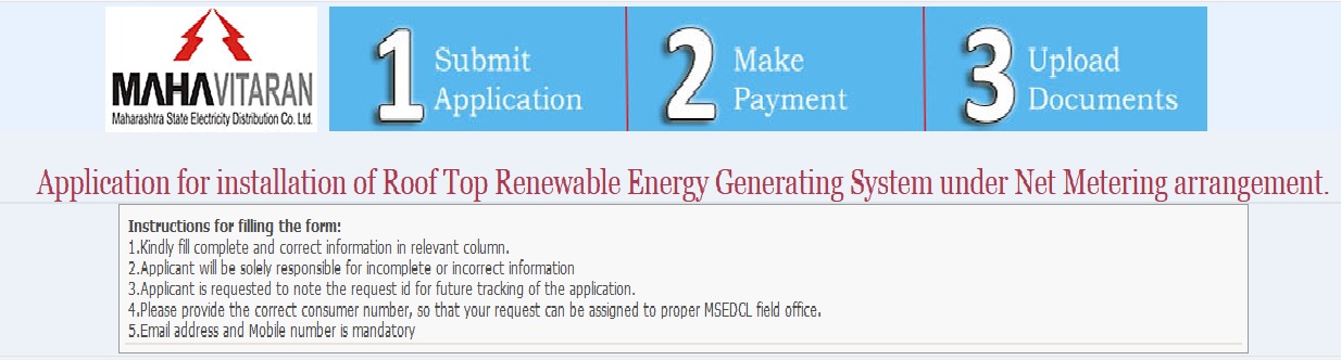 Application here : http://grouppaybill.mahadiscom.in/PayNCCharges/UI/ROOFTOP/PVNewApplication.aspx