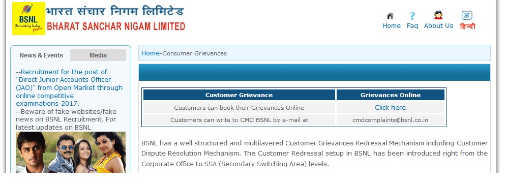 Service Name : BSNL Customer Grievances Redressal Mechanism