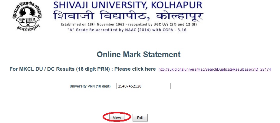 Mark Statement : http://exam1.unishivaji.ac.in:89/