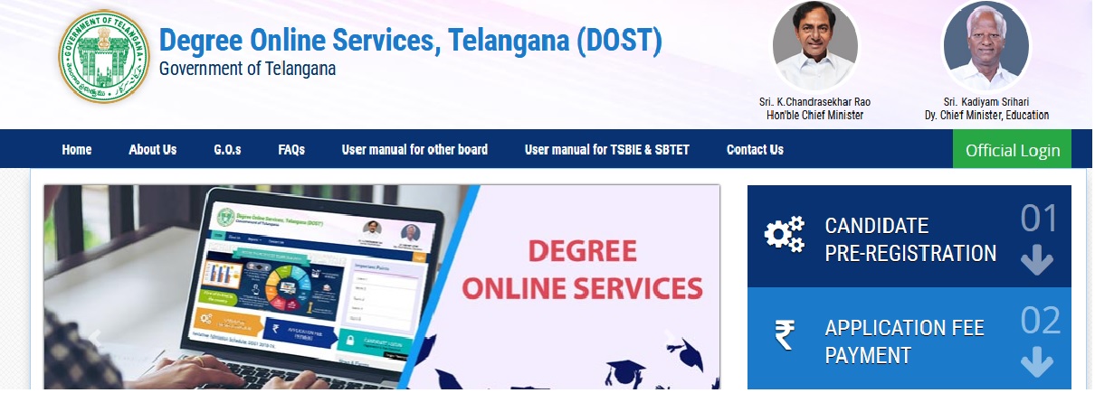 Service Name : DOST Degree Online Services Telangana 2016-17