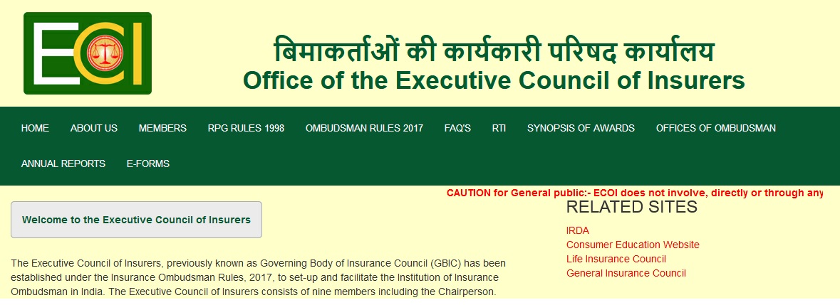 The Governing Body of Insurance Council (GBIC) has been established under Redressal of Public Grievances Rules 1998, to set-up and facilitate the Institution of Insurance Ombudsman in India.