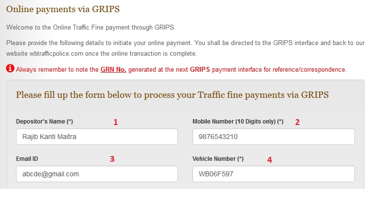 How To Do West Bengal Traffic Fines GRIPS Payment?