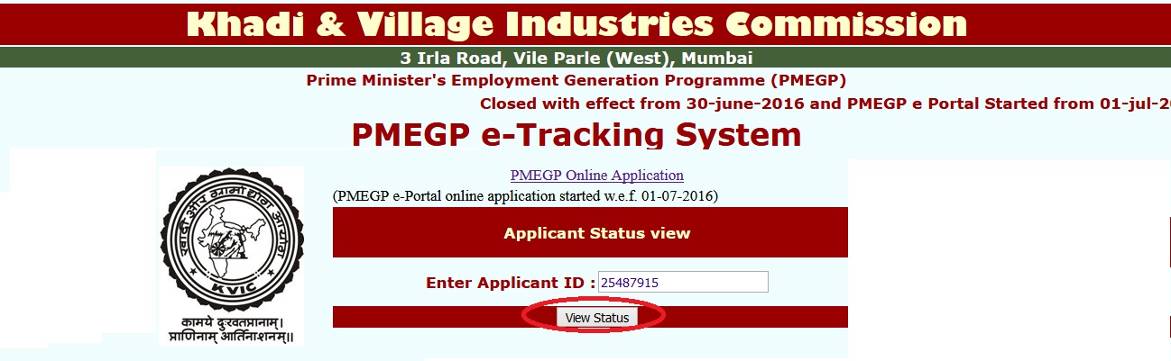 kvic.org.in PMEGP e-Tracking System : Khadi & Village Industries Commission