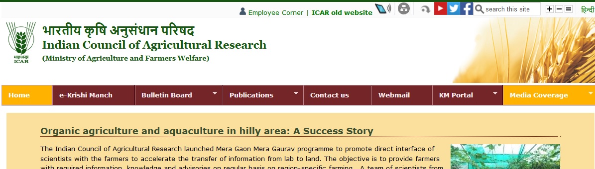 ** ICAR is an apex body under Ministry of Agriculture and Farmers Welfare, Govt. of India dedicated to agricultural research, education and extension in the country through a country wide network of Institutions and KVKs.