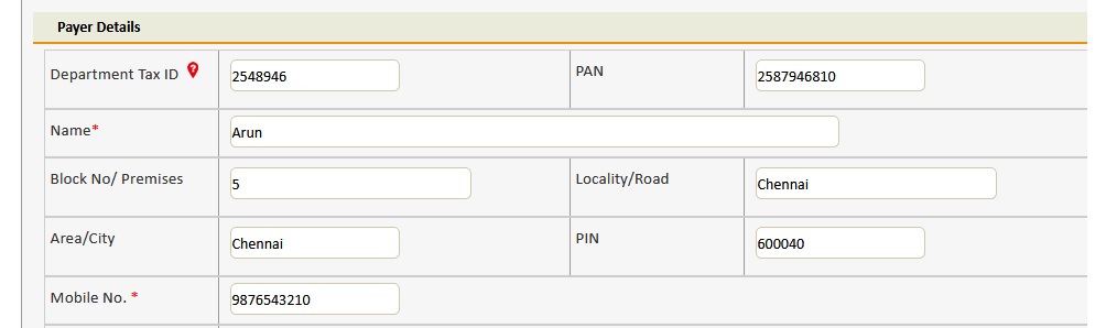 ** Scheme name – Select Scheme name from the dropdown list. Once the Payment type and scheme name is selected, the objects of taxes under which tax can be collected are displayed.