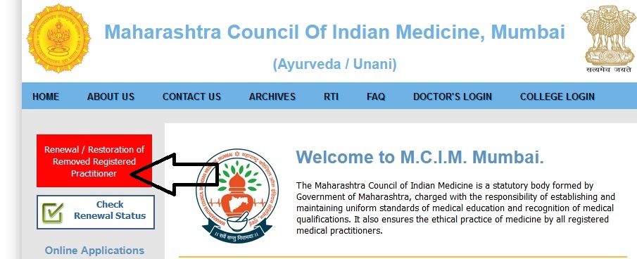 MCIM Online Application Registration/ Renewal : Maharashtra Council of Indian Medicine