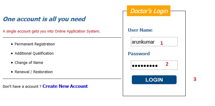 4. After successfully login, candidate can apply for MCIM Provisional Registration, Permanent Registration, Renewal, Additional Qualification, Change of Address, Change of Name etc.