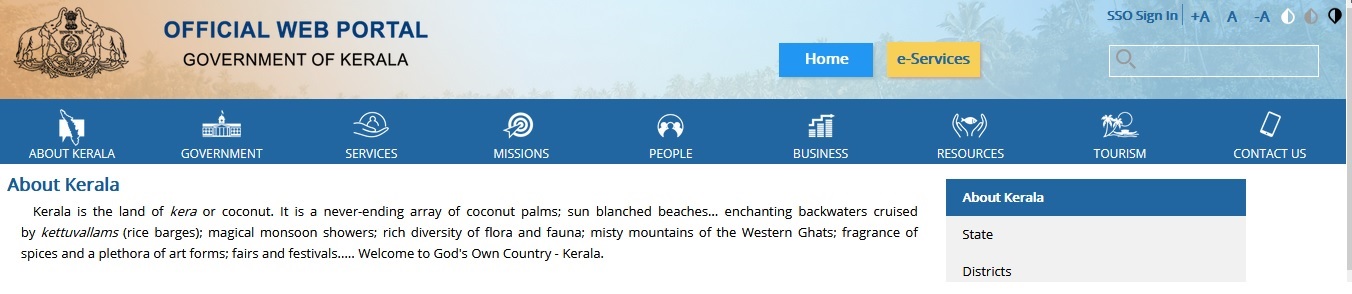 ** Kerala State portal provides various government department services accessible to the citizen from any location 24/7 via internet. Citizen can apply to any of these services through the portal.