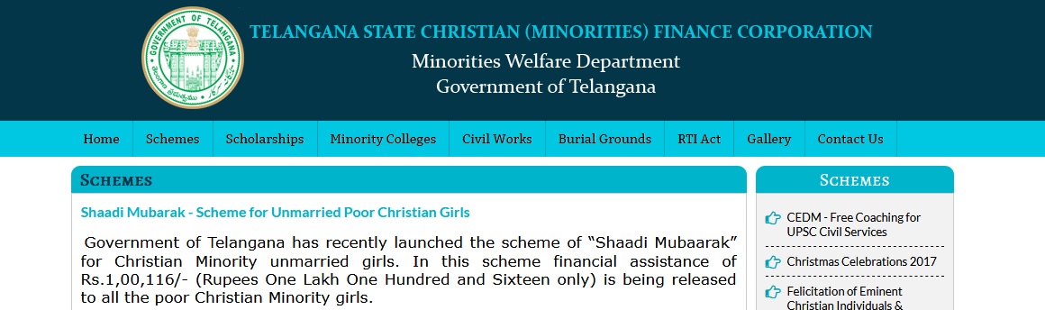Service Name : TSCMFC Shaadi Mubarak Scheme For Unmarried Poor Christian Girls