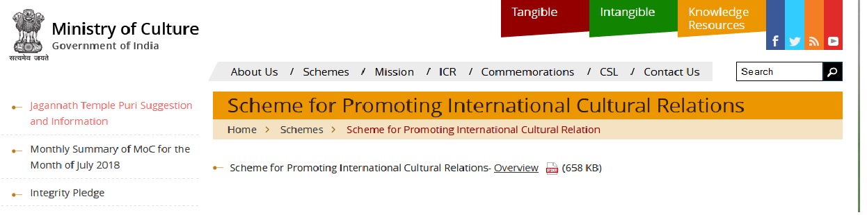 indiaculture.nic.in Scheme for Promoting International Cultural Relations : Ministry of Culture