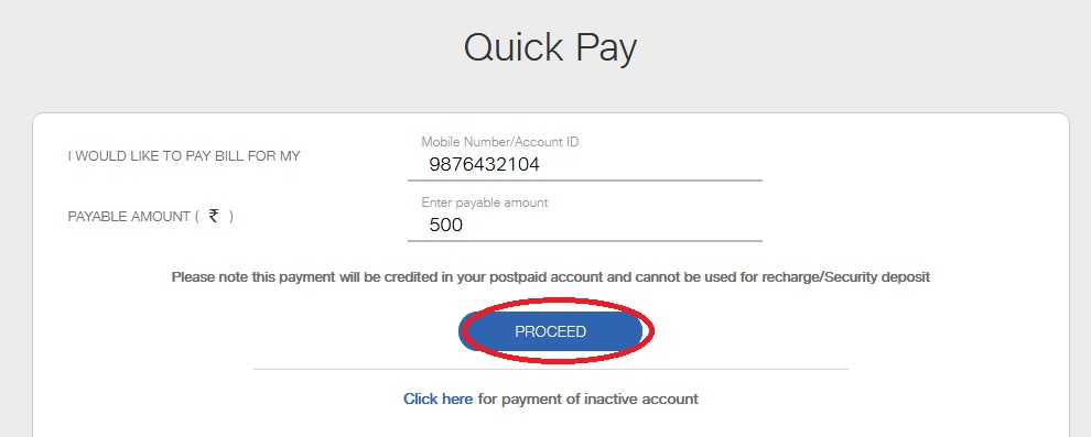 Enter Mobile Number or Account ID & Enter Payable amount & Submit.