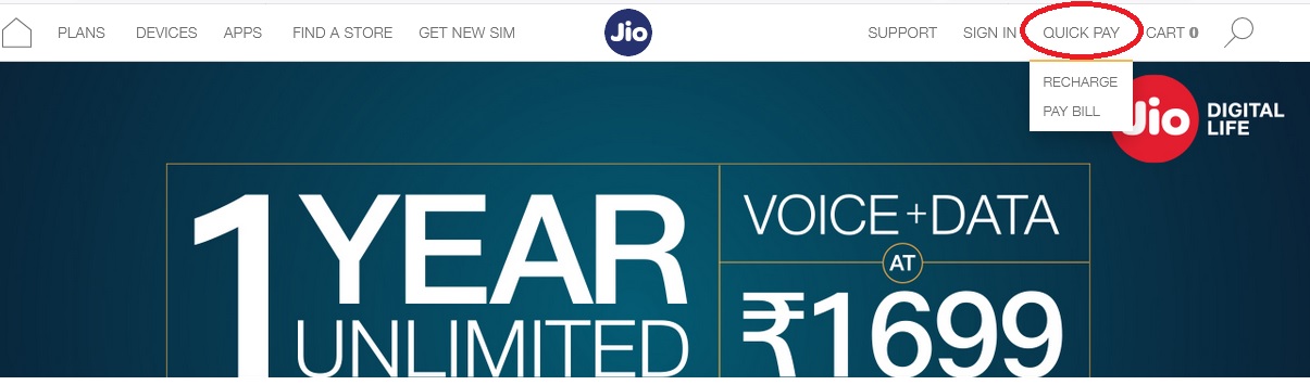 Reliance Jio Quick Pay/ Recharge/ Postpaid Bill Payment Online