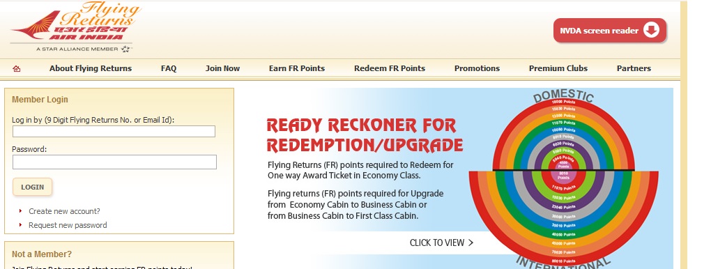 Flying Return Air India Redeem Miles : flyingreturns.co.in
