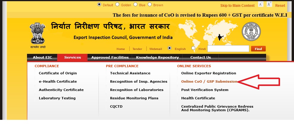 eicindia.gov.in Online CoO/ GSP Submission : Export Inspection Council