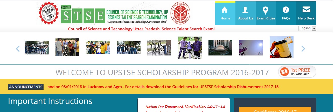 How to Apply UPSTSE UP Science Talent Search Exam : Uttar Pradesh