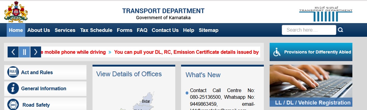 Home Page : http://transport.karnataka.gov.in/index.php/