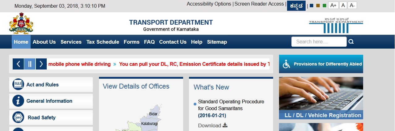 Home Page : http://transport.karnataka.gov.in/index.php/