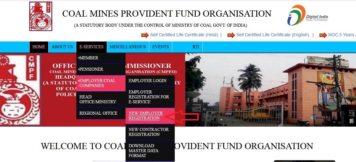 cmpfo.gov.in Online Registration : Coal Mines Provident Fund Organisation