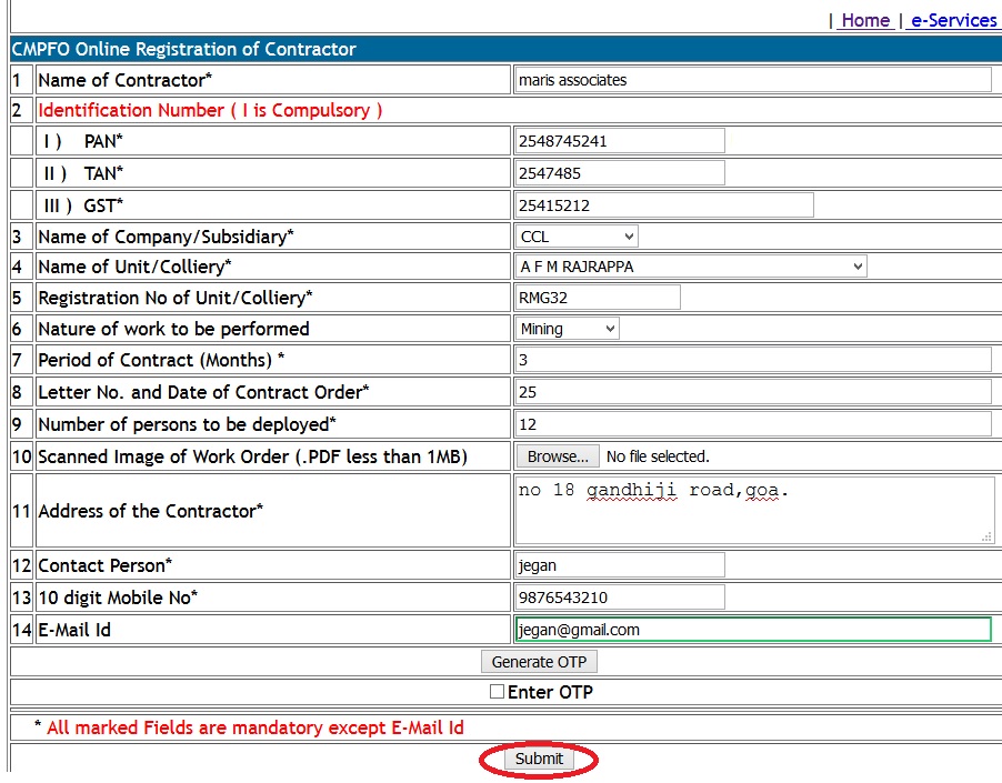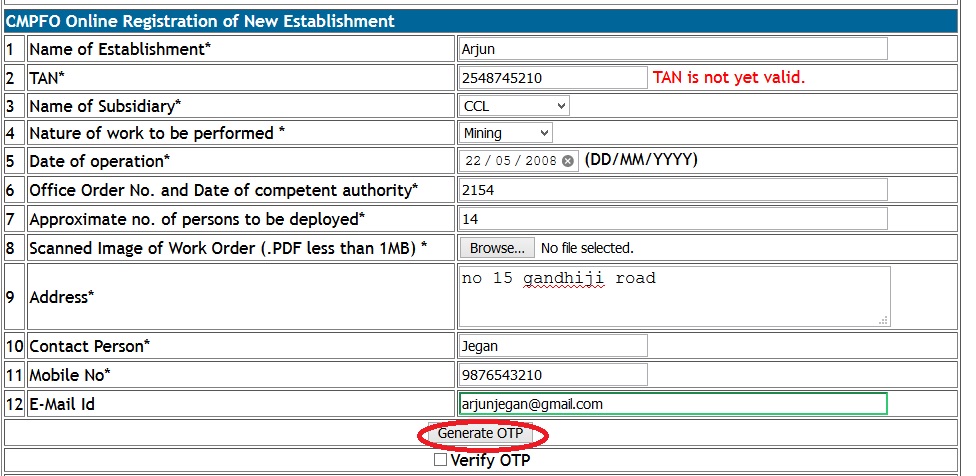 CMPFO Online Registration of New Establishment, Enter the following details for new