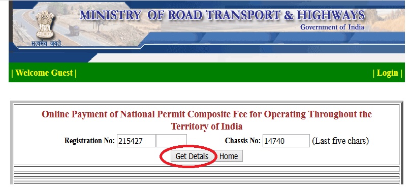 Online Payment of National Permit Composite Fee for Operating Throughout the Territory of India.