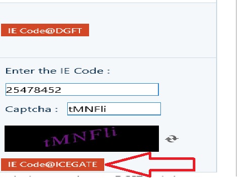 2. From the DGFT HQ, the data comes to customs ICEGATE. For the status and correctness of your IE code at customs ICEGATE location, please enter the IE code in the textbox and Click IE Code AT ICEGATE button.