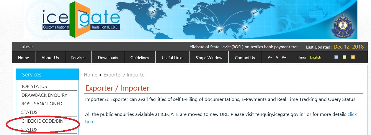 icegate.gov.in Check IE code/BIN Status : Central Board of Excise & Customs