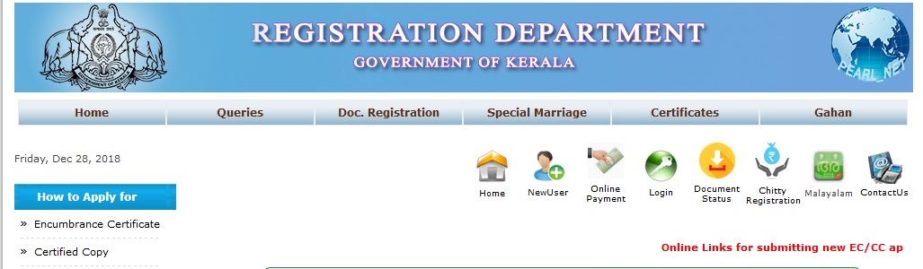 keralaregistration.gov.in : Check Encumbrance Certificate Status