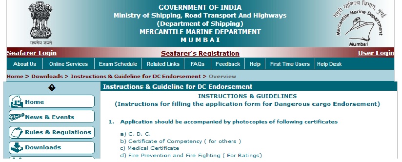 MMD Instructions & Guideline for DC Endorsement : Mercantile Marine Department