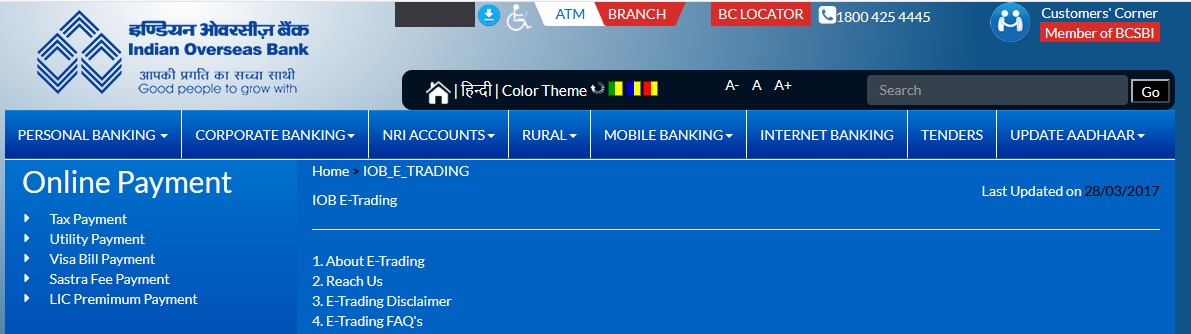 Website : https://www.iob.in/IOB_E_TRADING.aspx