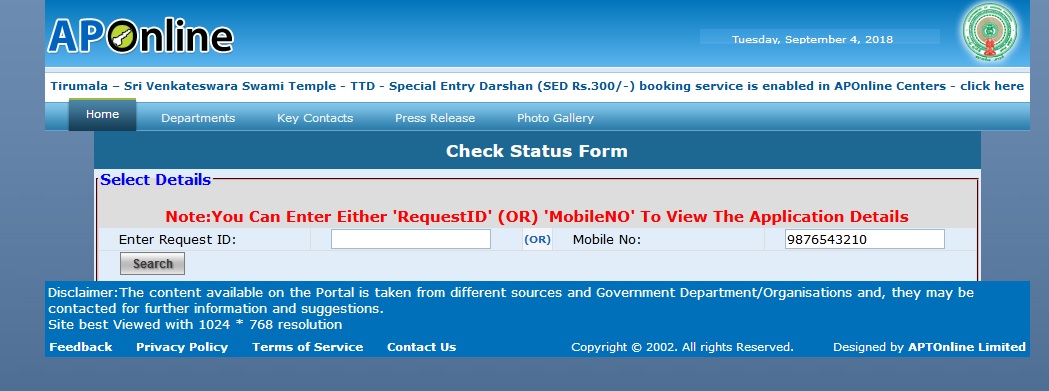 aponline.gov.in Check Application Status : Andhra Pradesh