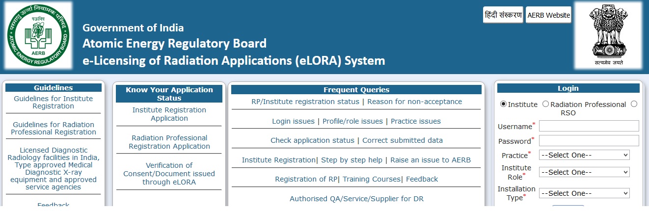 Website : https://elora.aerb.gov.in/ELORA/populateLoginAction.htm