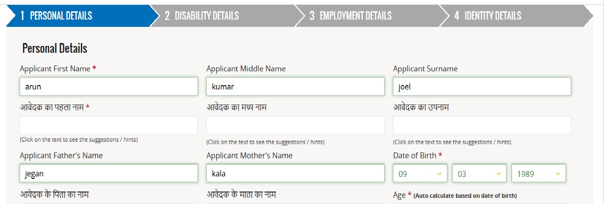 ** Person with Disability already having Disability Certificate (Whose data have not been migrated in UDID Portal): they will continue to fill up application as fresh and select option “Have Disability Certificate? : Yes” in Disability Details Tab . Fill up other details and submit application.