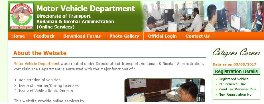 db.and.nic.in Vehicle Permit Search Andaman & Nicobar : Motor Vehicle Department
