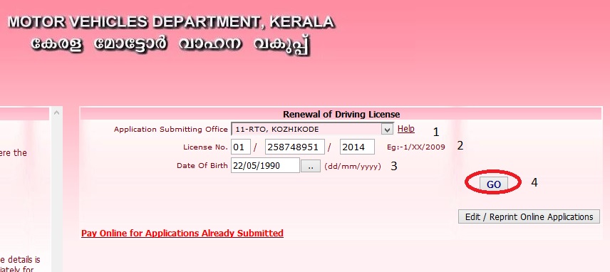 Kerala MVD : Renewal Of Driving License