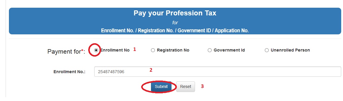 2. How can I open grips for taking challan for payment on counter payment of Profession tax?