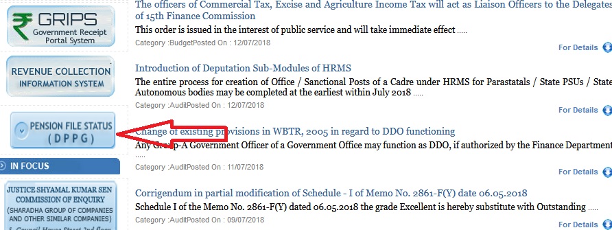 WBFIN DPPG Pension Files Status Check West Bengal