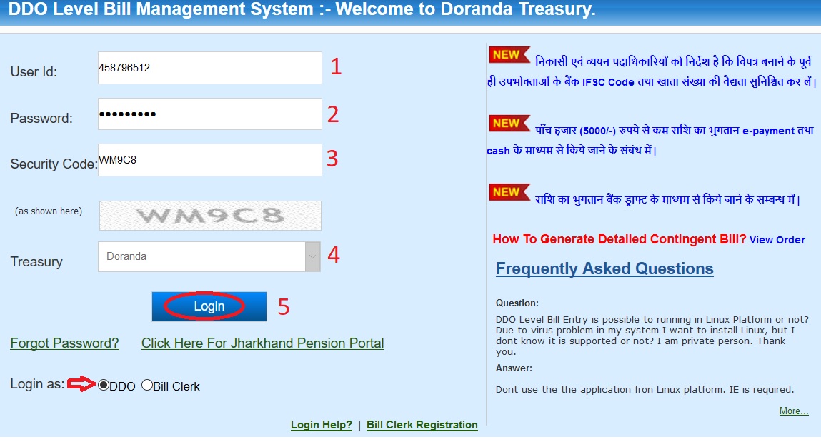 This facility describes about DDO Level Bill Management System. Don’t use this application from Linux platform. IE is required.