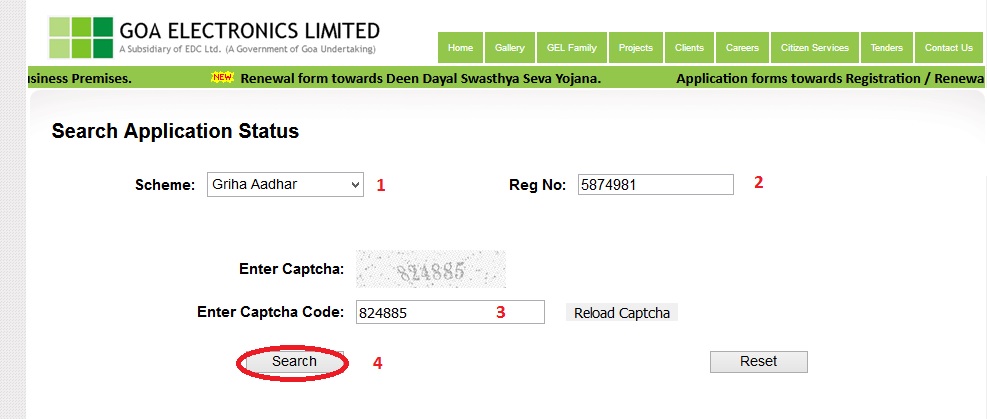 Goa Electronics : Search Griha Aadhar Scheme Application Status Online