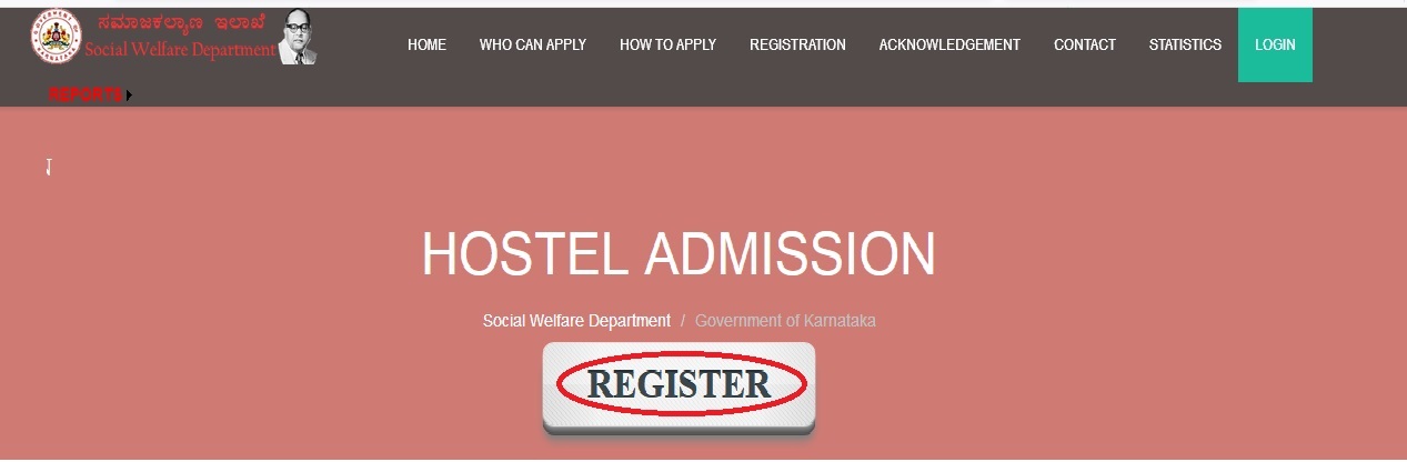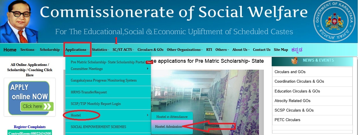 Step-1 : Logon to SWD Hostel Admission official website through Above URL,Click on the Application Tab in home Page, then select hostel admission tab in drop down list.