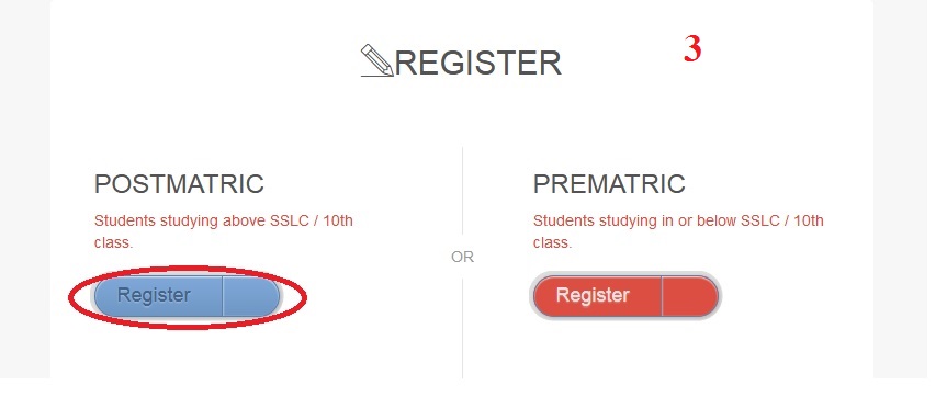 Step-3 : Click on the ‘Register’ link under ‘Postmatric or Prematric ’ heading.