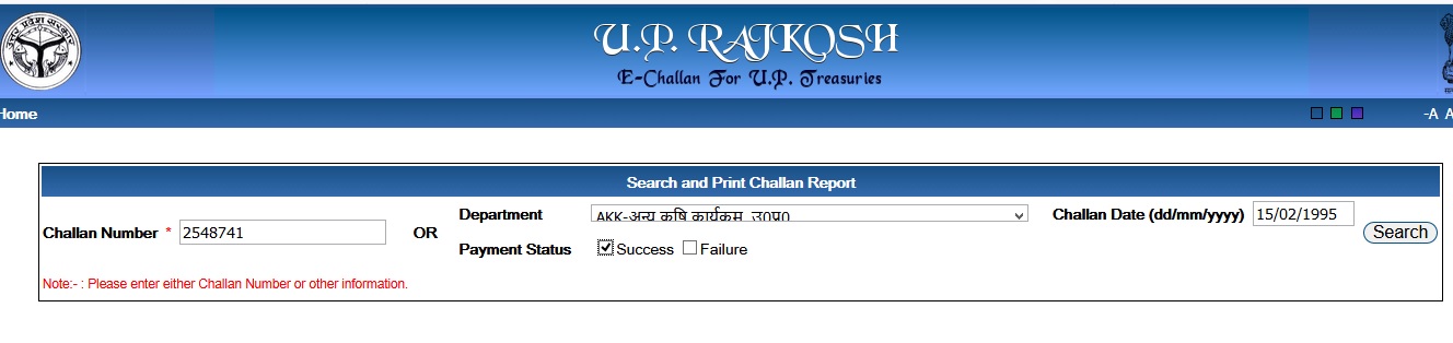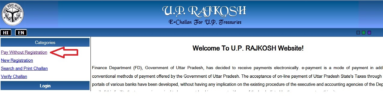 Pay Here : http://rajkosh.up.nic.in/PayWithoutReg.aspx