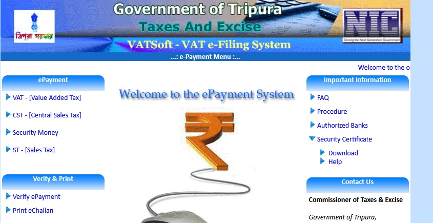 taxes.tripura.gov.in e-Payment of VAT, CST ,Sales Tax & Security Money